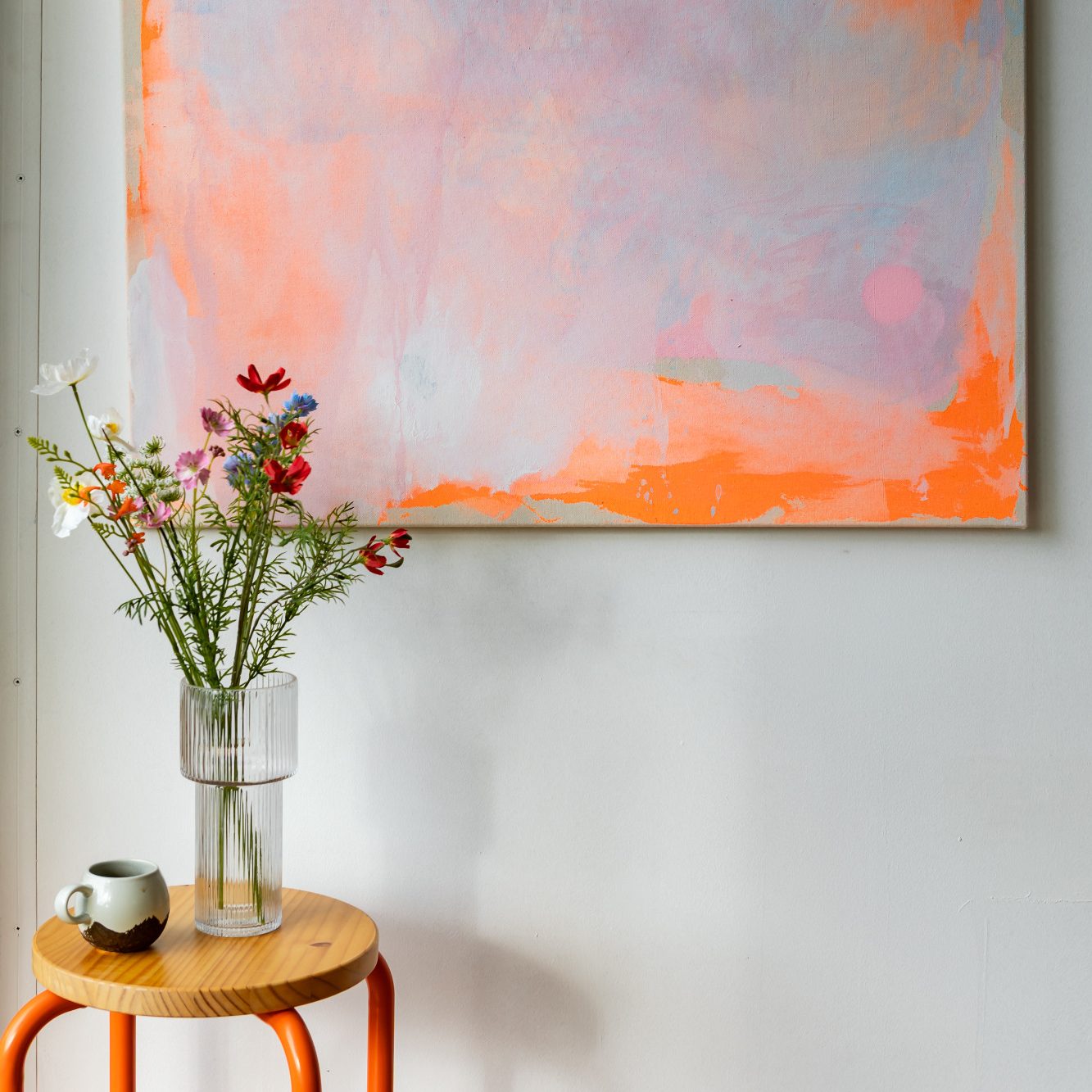 Meine Kunst ist oft farbenfroh und geprägt von meiner Liebe zu warmen Tönen wie Pink, Rosa und Orange. Einen festen Stil lege ich bewusst nicht fest: Abstraktion zieht sich zwar wie ein roter Faden durch meine Arbeiten, doch wichtiger als stilistische Grenzen ist mir die Freude am Experimentieren.